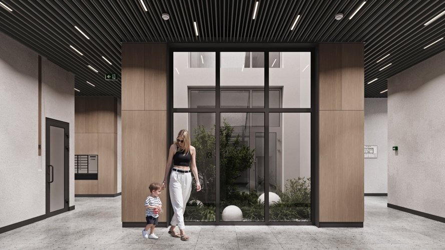 На последних этажах спроектированы квартиры с открытыми террасами, на нижних — с собственным патио.