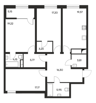 Площадь от 62.43 м2