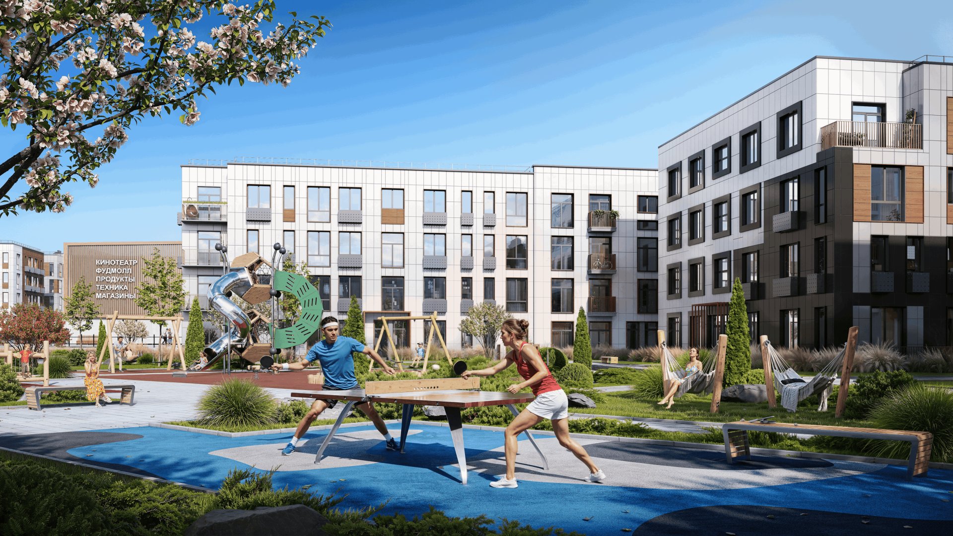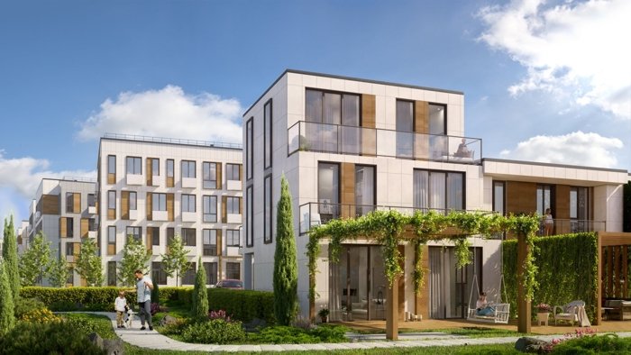 Применены различные архитектурные решения: дизайнерские эргономичные вентилируемые фасады отделанные керамогранитом отлично вписываются в ландшафт и подчеркивают внешний вид зданий.